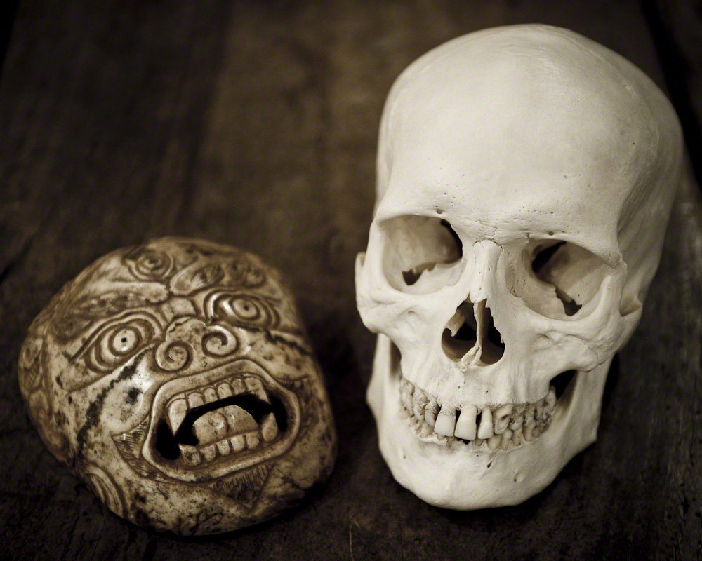 It’s that time of year again—Halloween and John’s birthday. Last year it was easier because on a trip to Ireland we were so lucky to get to visit the artist Gottfried Helnwein, who lives in a castle and has a collection of skulls that John thought was cool. I thought this astonishing artist, with his all-black attire and collection of poison bottles, was inspiration for a fictional character, while John obviously had skull envy, even though he had plenty of skulls himself (more of the respectable Tibetan art variety, though)—and he dropped major hints that a skull would be the ideal birthday gift (!). But with its bone artifacts and macabre trinkets from John’s travels, our living room was already straight out the Addams Family. Once a little band of Tibetan monks came over and shielded their eyes from one wrathful metal deity and indicated that we were majorly cursed and need to “cover” it. I still plan to put a bag over its head, but I’m afraid to get too close. But you know how it is when someone is very hard to buy for. You start to feel a little desperate—there are only so many skull cufflinks a girl can buy. I fortunately remembered reading that David Sedaris bought his partner a full skeleton, and this reassured me that buying a human skull wasn’t completely outrageous. So I ordered a skull online—as far as can tell there is only one place that makes a business of this. I spoke to the guy who assured me that it was very hard to find an “intact skull”– like one without bullet holes, for instance. The box arrived in a curiously weighty box Fed Ex, and it was all too creepy so I hid it under my long coat in my closet for a month and often thought about it in there, glancing over at the closet when no one was looking like something out of a horror movie. When the day came, I wrapped the box in blue birthday paper, contents unseen. At the celebration dinner with the kids and John’s mother, there was dead silence when John unwrapped the skull with a pleased and knowing expression and held up the skull. Then, “Why’d you do it, Mom?” my daughter piped, as if I’d actually done the poor guy in myself. She has no idea how hard John is to buy for! “Don’t you like to get what you put on your birthday list?” I asked. Only John’s mother was enthusiastic. I’m stumped for a present this year. Please let me know whether you have any ideas for me.